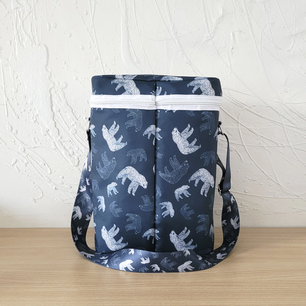Viene con una cinta sublimada al tono que posee un regulador para poder alargarla o acortarla. Los herrajes son metalicos. Tiene doble cierre para una apertura completa.